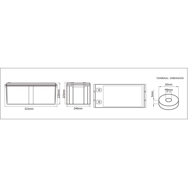 | Dimension (mm) | L522mm x W240mm x H220mm |